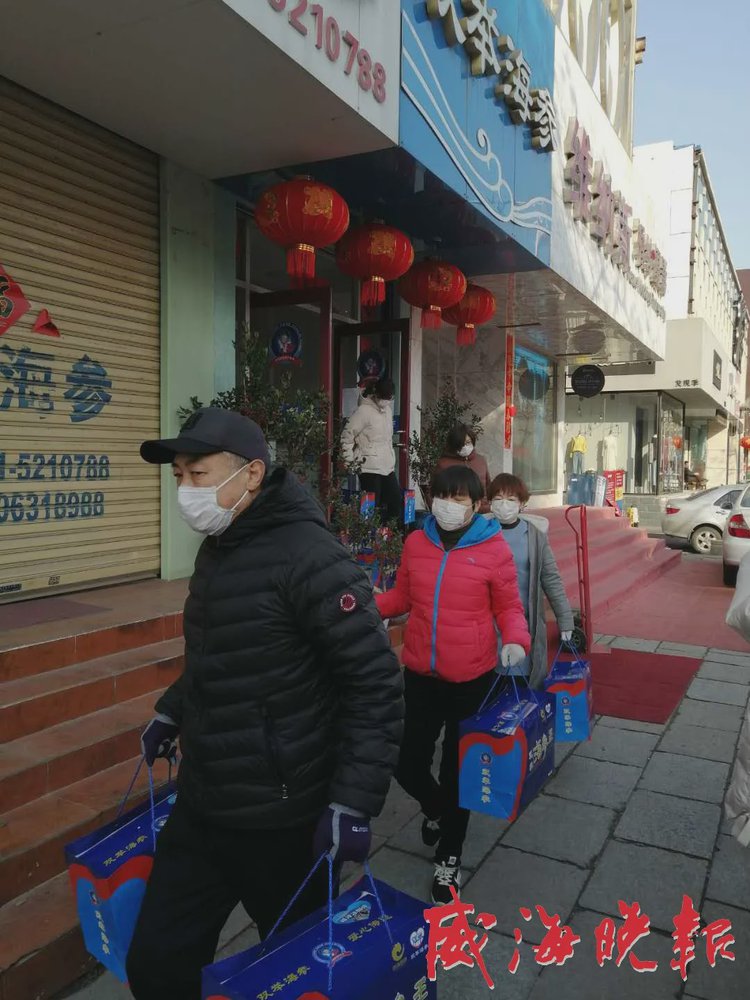 “我們這次積極響應(yīng)市委市政府提出的‘為新冠肺炎疫情防控一線醫(yī)務(wù)人員辦好十二件實(shí)事’的工作要求,今天上午要采取現(xiàn)場(chǎng)配送和郵寄的方式,為我市29名一線醫(yī)護(hù)人員每家贈(zèng)送一箱‘威海刺參王’,員工正在抓緊時(shí)間打包。總經(jīng)理李雙舉特別叮囑我們,要精挑細(xì)選,把最好的產(chǎn)品送給這些可親可敬的人!”雙舉海參威海店經(jīng)理杜建紅這樣回答。