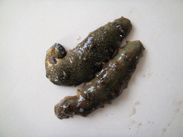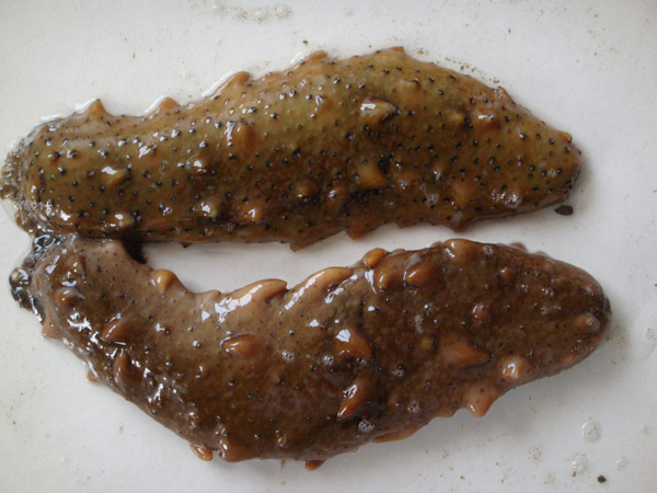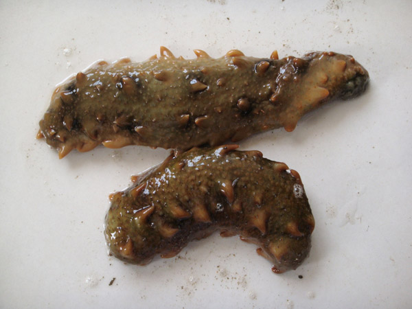 外表發(fā)綠的海參,這個(gè)海參就是生活在海藻茂密的地方。