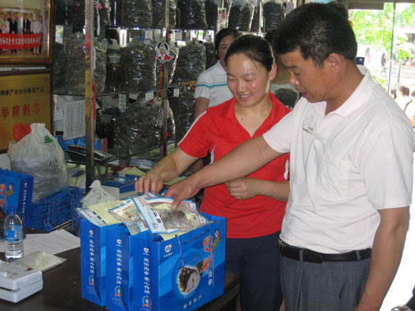 “大哥,您先品嘗一下咱們的高壓即食海參王。”對(duì)每一位進(jìn)店的顧客,李慶娜都是這樣笑臉相迎。