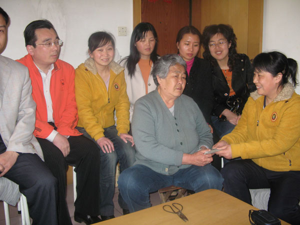 雙舉海參員工和部分經(jīng)銷商一起走過社區(qū)困難戶,為老人送去溫暖。