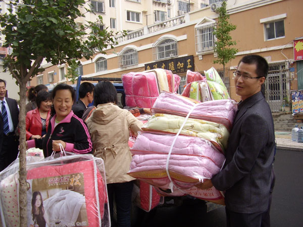 雙舉員工在給四川地震災(zāi)區(qū)捐被,讓他們過一個溫暖的冬天。